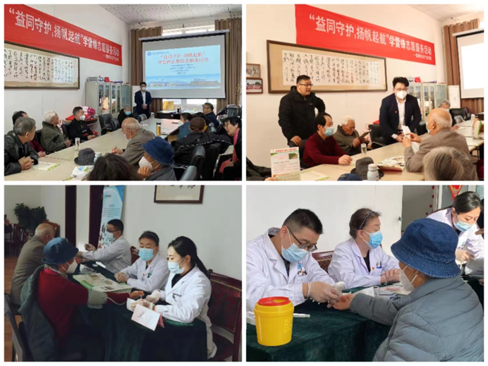 儀式后,濟南魯商福瑞達護理院工作人員為山東商院退休教師舉行養(yǎng)生保健知識講座,現場解答問題,并提供血糖監(jiān)測、血壓測量、常見疾病防治、康復咨詢服務,為老師們的健康保駕護航。