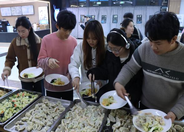 學(xué)校還為學(xué)生們舉辦了一場(chǎng)溫馨且富有意義的冬至活動(dòng),讓魯醫(yī)學(xué)子在冬日里感受到了濃濃的節(jié)日氛圍與校園溫情。同學(xué)們熱情高漲,紛紛大顯身手,不一會(huì)兒一盤盤飽含著濃濃心意的餃子便擺滿了桌面。與此同時(shí),學(xué)校食堂被精心裝扮一番,五彩的氣球、喜慶的彩帶,瞬間將寒冷的冬日裝點(diǎn)得暖意融融。一場(chǎng)冬至里的文藝表演呈現(xiàn)在眼前,來(lái)自各學(xué)院的表演者們,通過歌曲、舞蹈、相聲等精彩的節(jié)目表演將活動(dòng)氣氛推向了高潮。