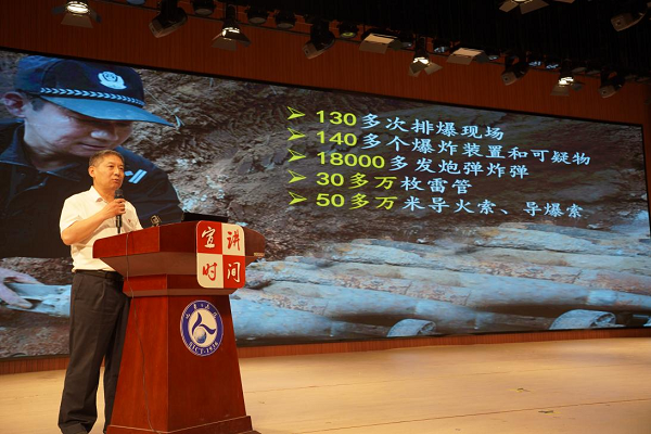 活動(dòng)現(xiàn)場(chǎng),勞模工匠們用質(zhì)樸的語言,講述著各自崗位上的堅(jiān)守與奉獻(xiàn)。張保國(guó)多年來奮戰(zhàn)在排爆一線,用血肉之軀守護(hù)人民群眾生命財(cái)產(chǎn)安全,他的英勇事跡讓師生們深刻感受到了人民警察的責(zé)任與擔(dān)當(dāng);董丹在平凡的公交駕駛崗位上,以熱情服務(wù)和安全駕駛贏得乘客贊譽(yù),展現(xiàn)了新時(shí)代勞動(dòng)者精益求精的職業(yè)素養(yǎng);辛沙沙以溫柔和專業(yè)為逝者送別,詮釋了對(duì)生命的尊重與敬畏;王德萍和張?zhí)N祿兩位教師,扎根教育事業(yè),用愛與智慧培育祖國(guó)花朵,彰顯了人民教師的高尚情懷;劉小源和姚鵬在公安崗位上恪盡職守,為維護(hù)社會(huì)穩(wěn)定貢獻(xiàn)力量,他們的事跡激勵(lì)著在場(chǎng)每一個(gè)人。