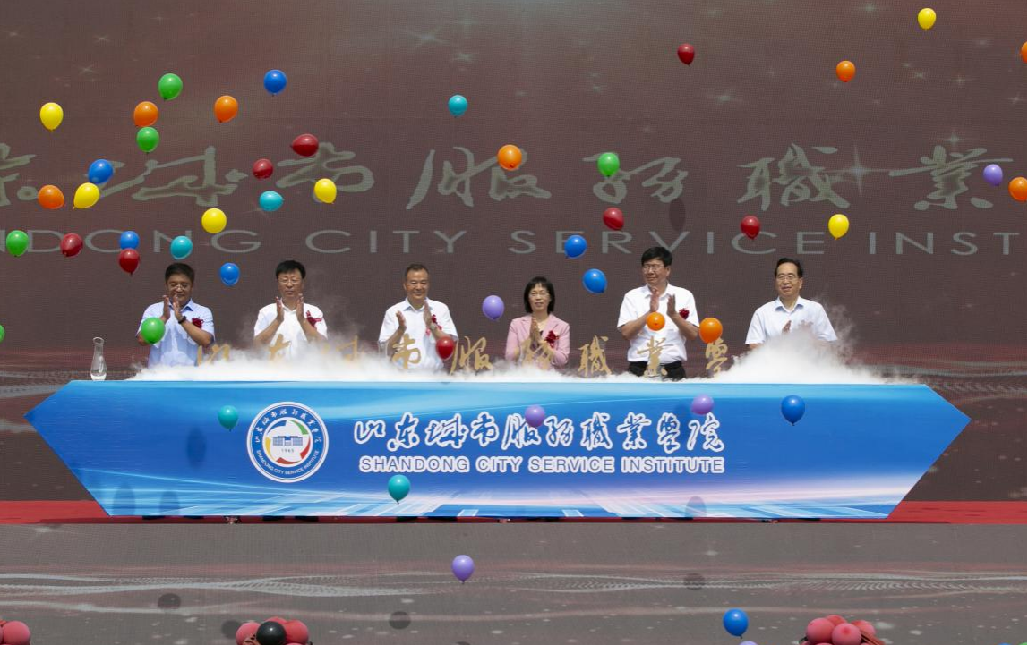 6月27日,山東城市服務(wù)職業(yè)學(xué)院舉行揭牌儀式。省教育廳二級(jí)巡視員趙立輝出席揭牌儀式并宣讀《山東省人民政府關(guān)于同意設(shè)立山東城市服務(wù)職業(yè)學(xué)院的批復(fù)》。魯商集團(tuán)黨委常委、董事、組織人力資源部部長李林,煙臺(tái)市政協(xié)副主席、工商聯(lián)主席李京波,市委教育工委常務(wù)副書記、市教育局黨組書記、局長郝慎強(qiáng)出席揭牌儀式。