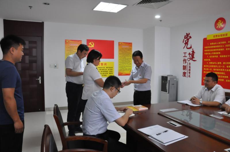 8月21日,銀座購物中心黨委為駐濟各單位3名8月份入黨的黨員過集體“政治生日”,公司黨委書記、董事長侯功海同志出席活動。