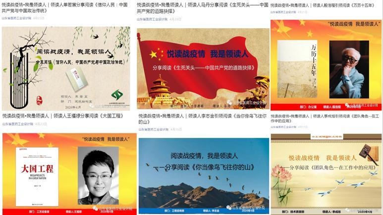省醫(yī)工設(shè)計院黨總支積極響應(yīng)魯商集團“新時代新使命新愿景”讀書競賽活動倡導(dǎo),大力推進學(xué)習(xí)型組織建設(shè),結(jié)合集團2020“創(chuàng)新年”工作要求,在全院開展“悅讀戰(zhàn)疫情,我是領(lǐng)讀人”讀書活動,引導(dǎo)全體干部職工以讀書充實內(nèi)在素養(yǎng),凝聚發(fā)展力量,堅定戰(zhàn)疫必勝的信心。
