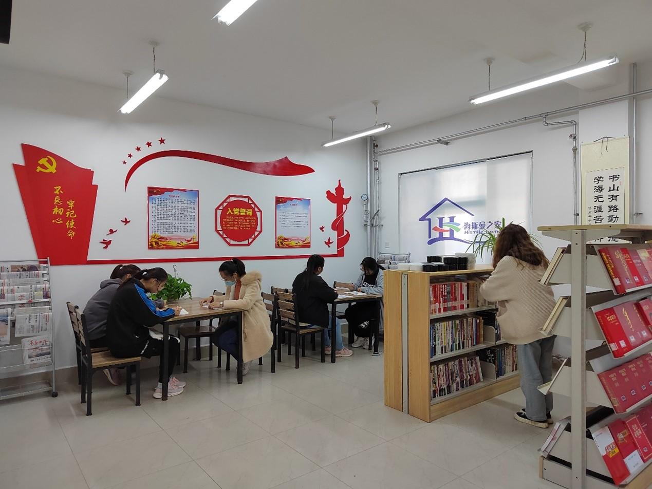 青島酒店學院堅持把“我為群眾辦實事”貫穿黨史學習教育全過程,通過在學生公寓樓內建設雅宿書屋,盤活公寓空間資源,延伸學生閱讀平臺,將學生公寓打造為黨建和思想政治教育的重要陣地。