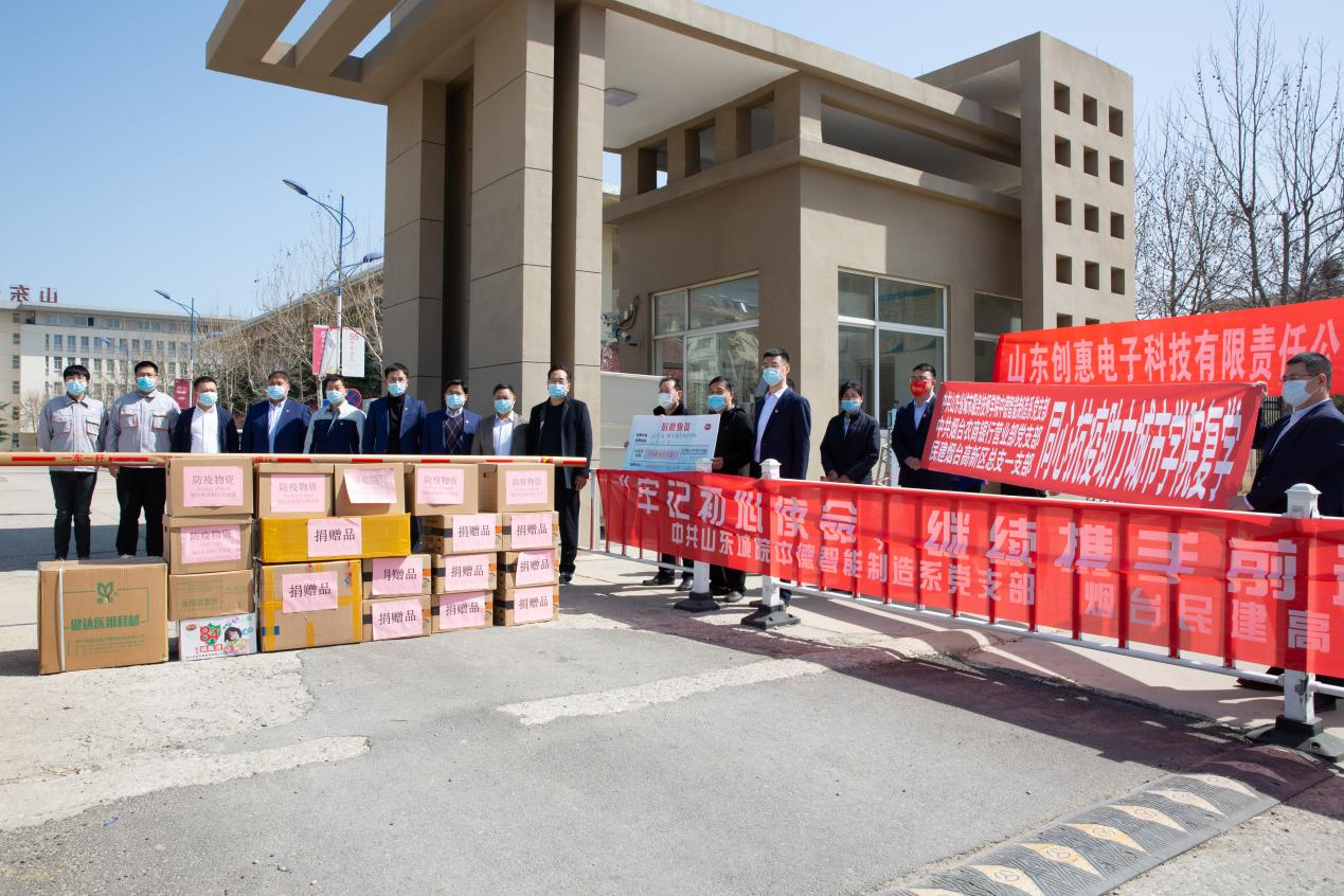 煙臺民建高新區(qū)總支一支部主委、山東創(chuàng)惠電子科技有限公司董事長高廣順代表民建煙臺高新區(qū)總支一支部向省城市學院捐贈防疫物資。