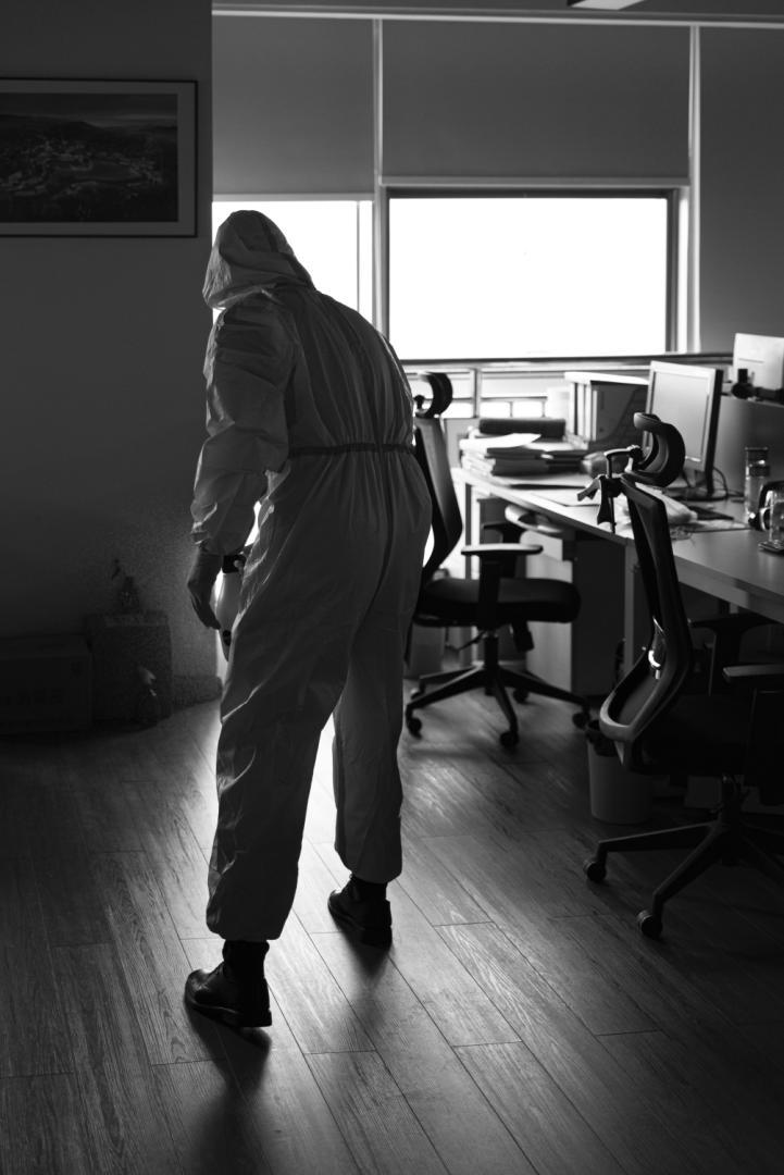 疫情發(fā)生以來,伊永利每天上班的第一項和最后一項工作,就是穿上防護(hù)服,對辦公區(qū)、電梯廳等重點區(qū)域進(jìn)行消殺,并用消毒濕巾仔細(xì)擦拭門把手、呼梯盒,確保消殺無死角、全覆蓋。作為一名老黨員,47歲的伊永利以實際行動履行諾言,沖鋒在前,堅守在抗擊疫情的第一線。