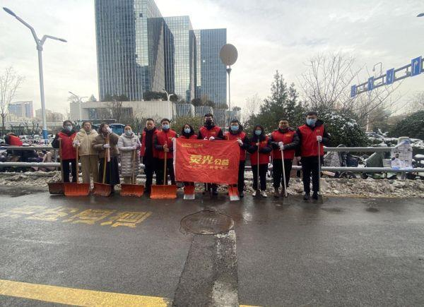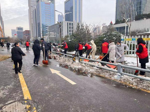 活動中,黨員志愿者們手持工具、不畏嚴(yán)寒,分工明確、配合默契,在國奧城園區(qū)開展除冰掃雪,為園區(qū)內(nèi)群眾的安全出行和交通暢通保駕護(hù)航。在大家的共同奮戰(zhàn)下,園區(qū)積雪積冰得到有效清除。