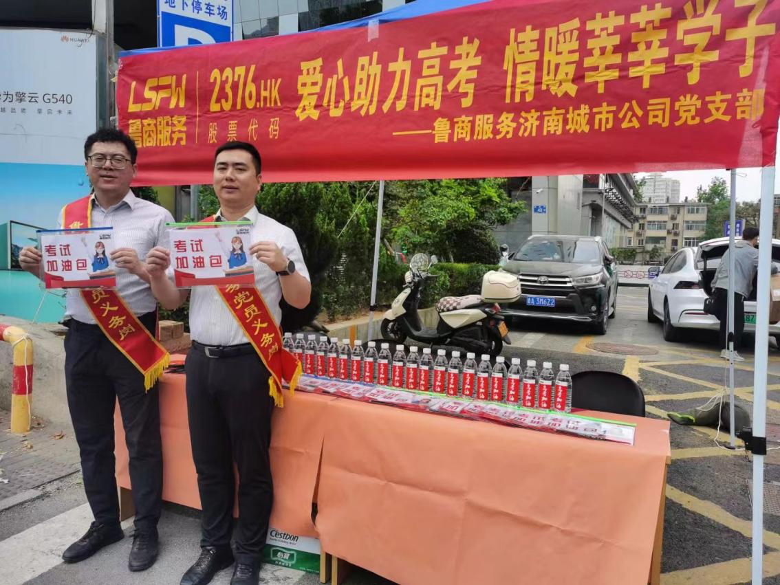 青島城市公司黨支部所屬青島藍岸麗舍項目,在青島二中考點附近設立“愛心助考驛站”,志愿者們為即將高考的小業主提供礦泉水等消暑物品,為考生家長們提供免費停車場,并為環衛工人、執勤交警免費分發飲用水及防暑藥等物品,共同做好高考保障服務工作。