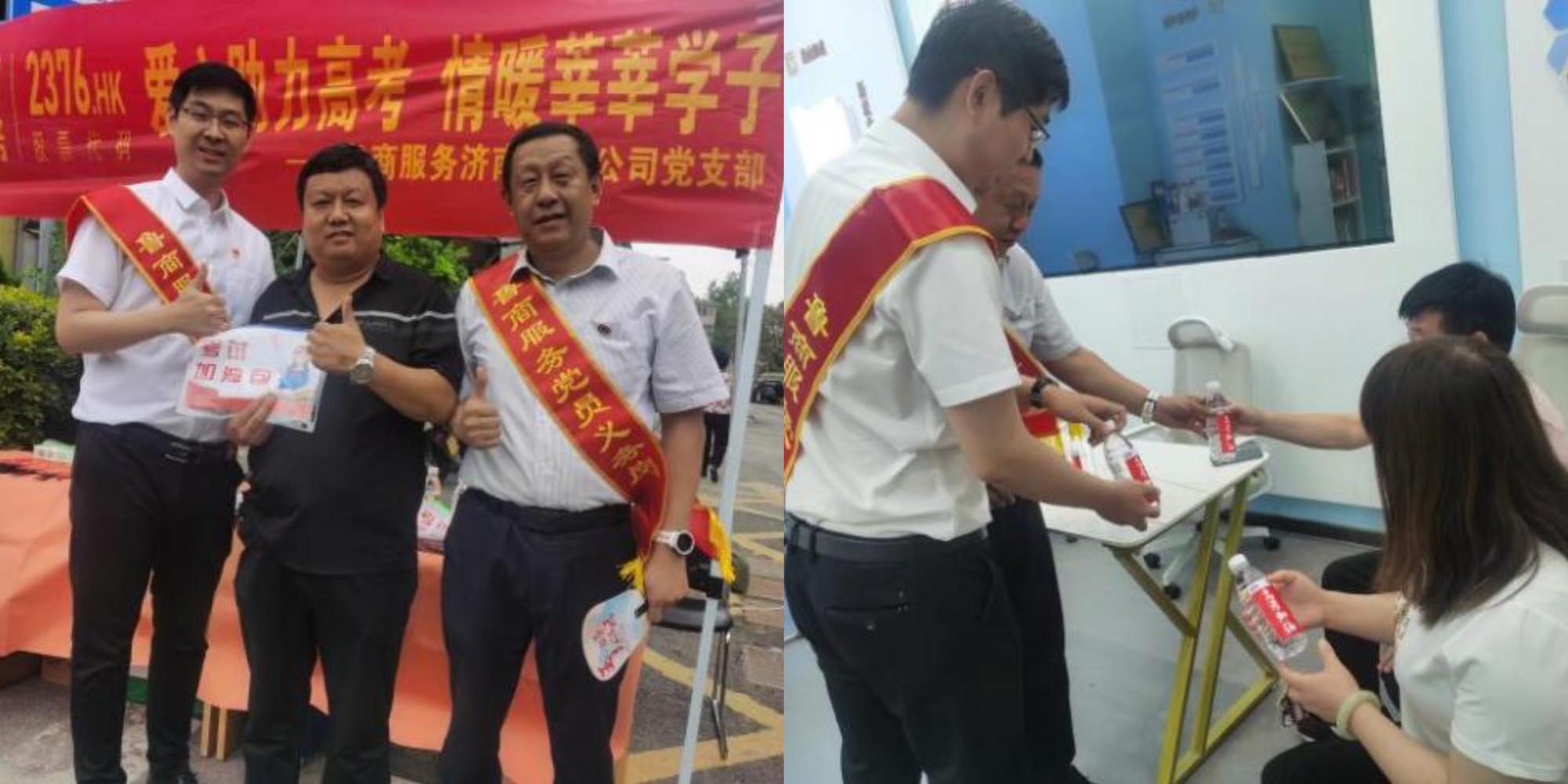 濟南城市公司黨支部所屬銀座數碼項目與賽博數碼廣場聯合在濟南七中考點附近搭建了“愛心助考點”,黨員志愿者們及項目員工免費為考生發放礦泉水和“高考加油包”、清涼扇子等物品。同時,黨支部還準備了“愛心休息室”,供考生和家長休息,實現了“渴可飲水、累可歇腳、熱可納涼”,助力廣大考生安心赴考。