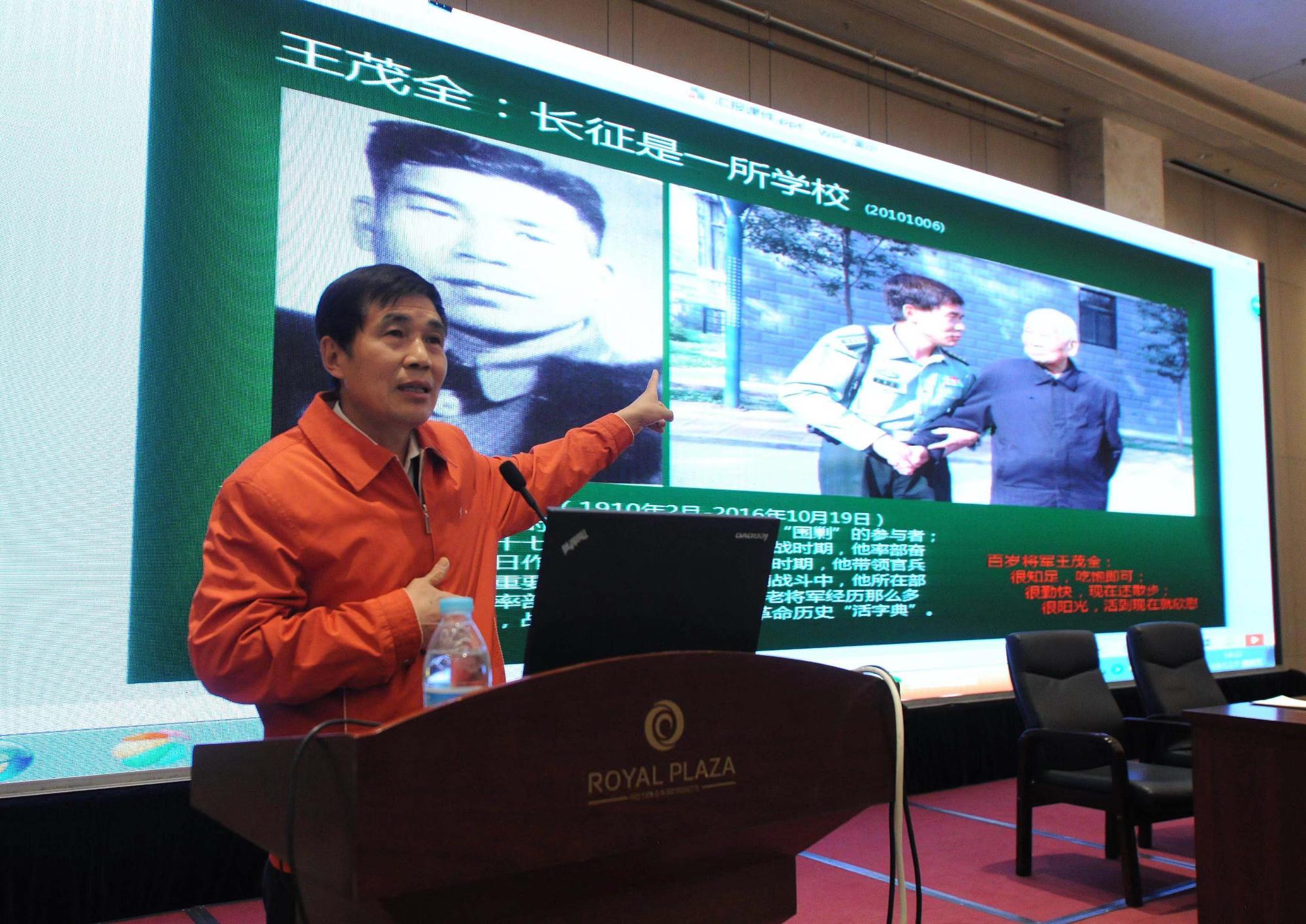 卜金寶長期關注黨史軍史研究,先后采訪過300余位開國將領和英模人物,整理出300多萬字的珍貴史料,400多小時的采訪視頻。講座中,他將信仰提煉成忠誠、堅韌、敬業(yè)、豁達、感恩五個關鍵詞,運用視頻、圖片、故事等豐富形式,以獨特視角講述了革命前輩的感人事跡,再現了英模人物直面艱難困苦的巨大勇氣和笑談人生挫折的博大胸懷。