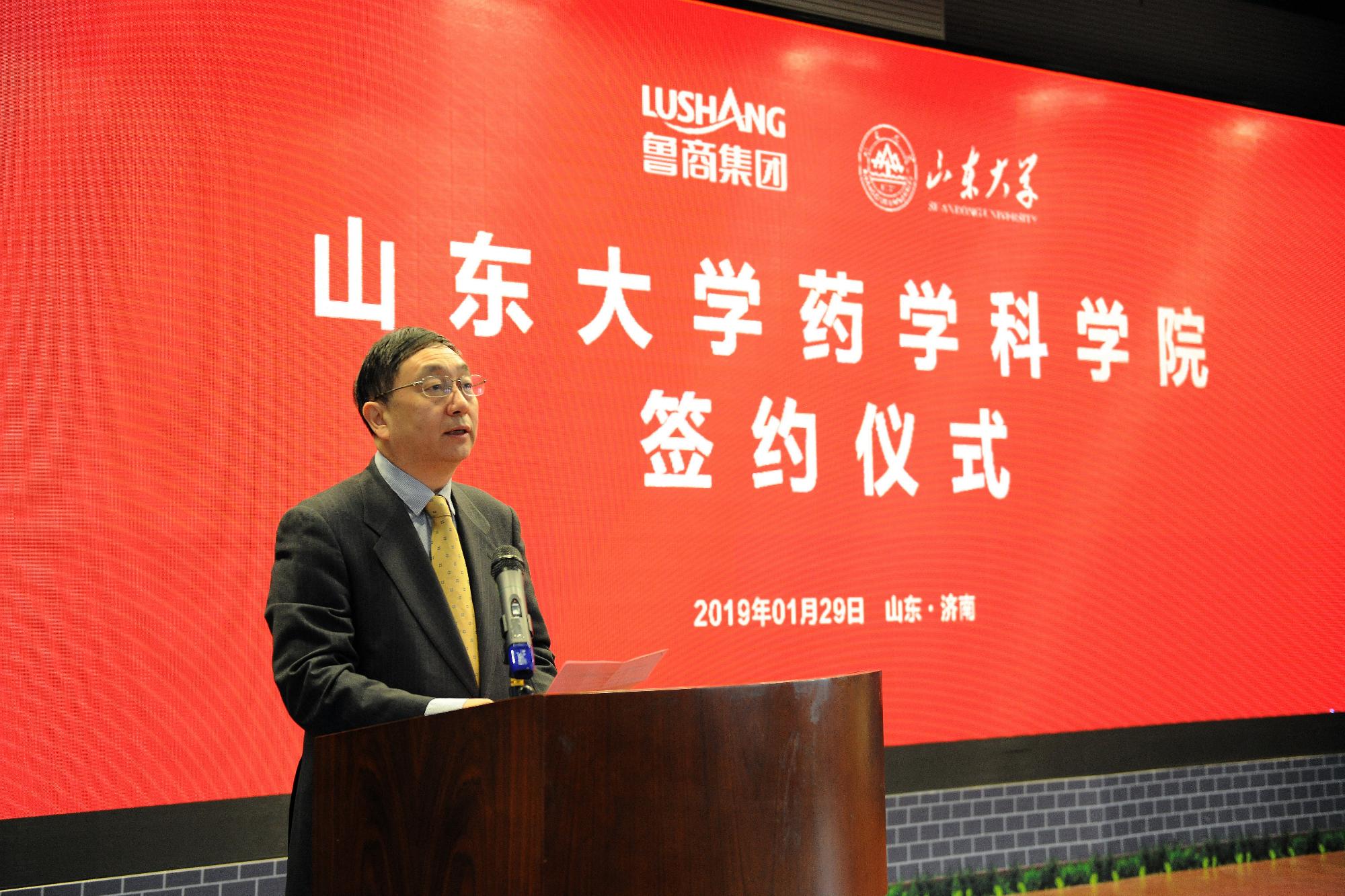凌沛學在致辭中說,魯商集團和山東大學經(jīng)過多次協(xié)商討論,本著“優(yōu)勢互補、共同發(fā)展、互惠互利、合作共贏”的原則,共建山東大學藥學科學院。合作有利于將山東省藥學科學院藥物研究、產(chǎn)業(yè)轉(zhuǎn)化優(yōu)勢與山東大學基礎(chǔ)創(chuàng)新研究、前沿探索優(yōu)勢有效結(jié)合,圍繞生物醫(yī)藥、創(chuàng)新藥物、醫(yī)療器械、安全評價等關(guān)鍵技術(shù)研發(fā),實現(xiàn)核心技術(shù)突破,增強醫(yī)藥健康產(chǎn)業(yè)的科研創(chuàng)新能力和轉(zhuǎn)化效率;有利于提高高層次人才引進的能力和水平,雙方將共建高級別專家指導委員會,深層次開展學術(shù)交流,指導重大科研項目合作攻關(guān),進一步提升科研競爭力,打造國際一流的創(chuàng)新團隊;有利于提升平臺建設(shè)水平,充分利用雙方已有的技術(shù)優(yōu)勢和平臺資源,共享儀器設(shè)備和關(guān)鍵技術(shù),完善研發(fā)——成果轉(zhuǎn)化——產(chǎn)業(yè)化的全鏈條建設(shè),實現(xiàn)新藥研發(fā)與評價的國際雙邊或多邊互認體系,共同構(gòu)建國際先進的關(guān)鍵技術(shù)共享創(chuàng)新平臺。