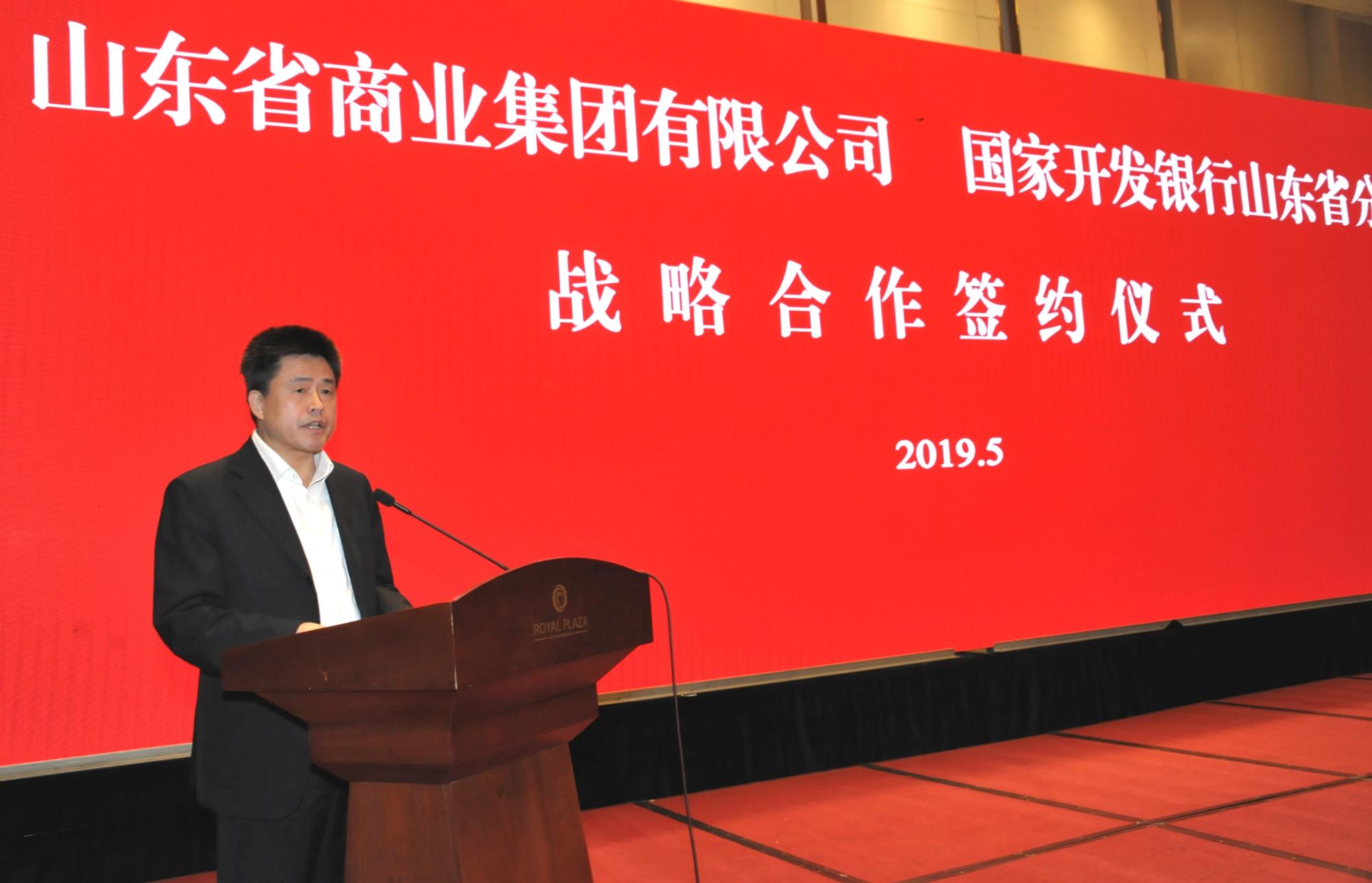 高洪雷在致辭中就國開行山東分行多年來對魯商集團的支持表示感謝。他說,集團2018年營業規模同比增長12.44%,利潤同比增長56.91%,今年1-4月報表利潤同比增長50.18%。下一步,魯商集團將繼續堅持“穩中求進,穩中求變”工作總基調,以“改革年”活動為抓手,履行“服務山東大局,服務人民大眾”兩大使命。在新舊動能轉換的時代要求下,集團將積極打造鄉村振興齊魯樣板魯商樣板片區,致力于精準扶貧。同時,繼續實施“創新驅動、人才引領、品牌帶動”三大戰略,推進“扭虧、降負債、資產提升”三大硬任務,努力實現輕資產發展、智能化發展、資本化發展、合作化發展,不斷推動集團做強做優做大。