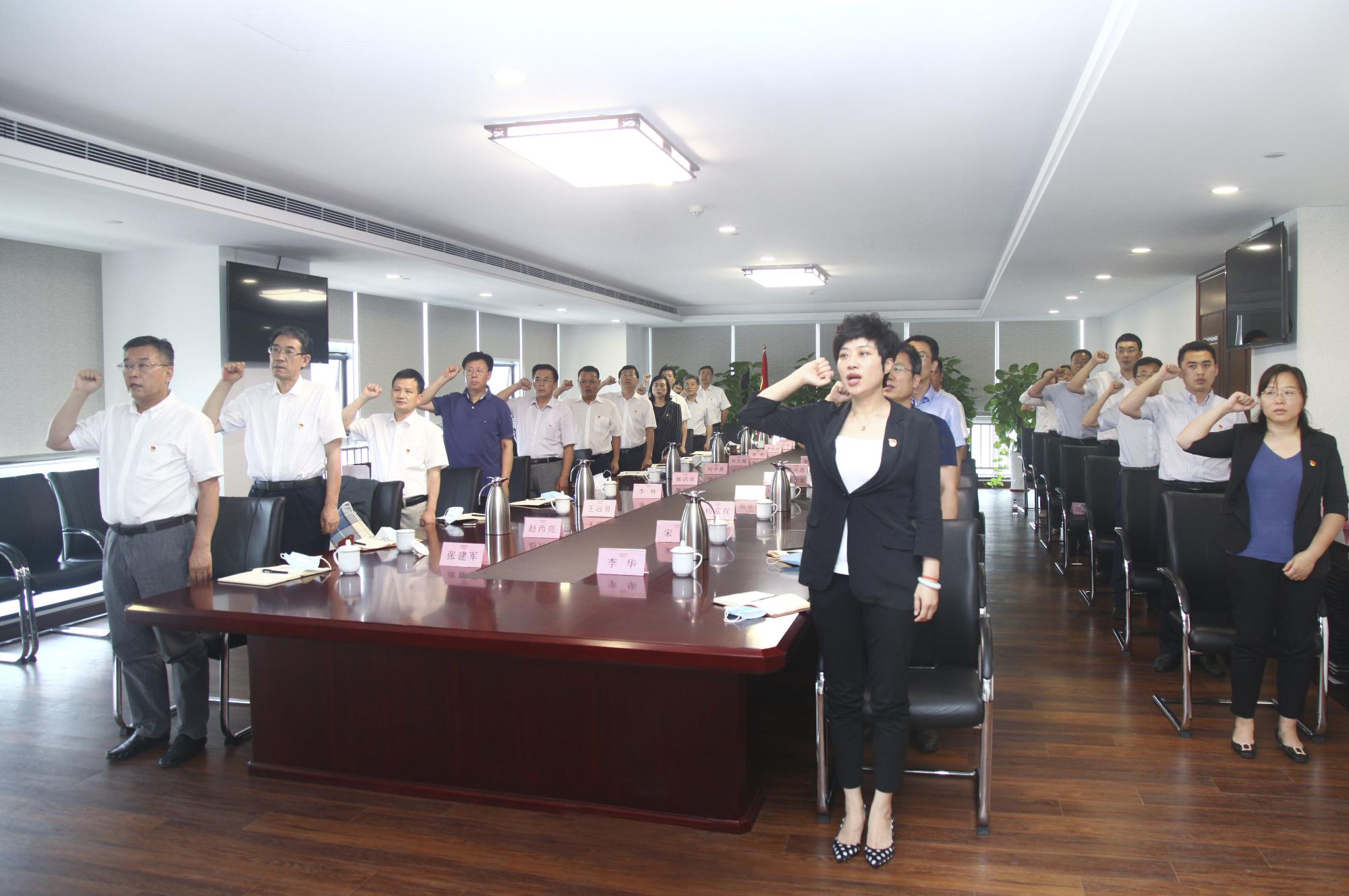 專題黨課開始前,張斌帶領(lǐng)與會者集體宣誓,重溫入黨誓詞。