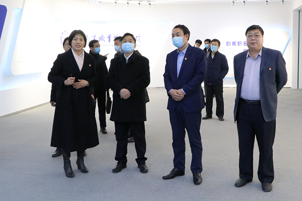 宣講報告會后,高洪雷陪同王可實地調研了山東商院現代服務業大樓,參觀了學校展廳、現代商務服務產教融合中心。王可對學校的創新創業教育開展情況、師資隊伍建設、無水活魚技術、農產品跨境運輸以及由學生自主完成的VR視覺營銷實戰項目等進行了深入了解,并予以充分肯定。