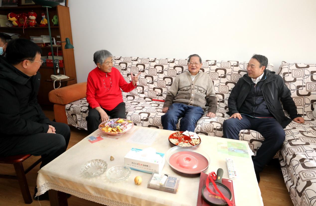高洪雷一行首先來到86歲的集團(tuán)副廳級退休干部徐定昕家中。他親切詢問老人的健康情況,叮囑老人好好照顧身體。高洪雷表示,近年來,集團(tuán)頂住巨大競爭壓力,取得了可喜的發(fā)展成績,更好地增加了員工收入,盡一切努力提高大家的幸福感和歸屬感?!凹瘓F(tuán)發(fā)展得好,我們也跟著享福了。”聽著暖心的話語,徐定昕和老伴由衷地說道。他們表示,集團(tuán)對老干部照顧得非常周到,逢年過節(jié)的福利都會親自送到家。