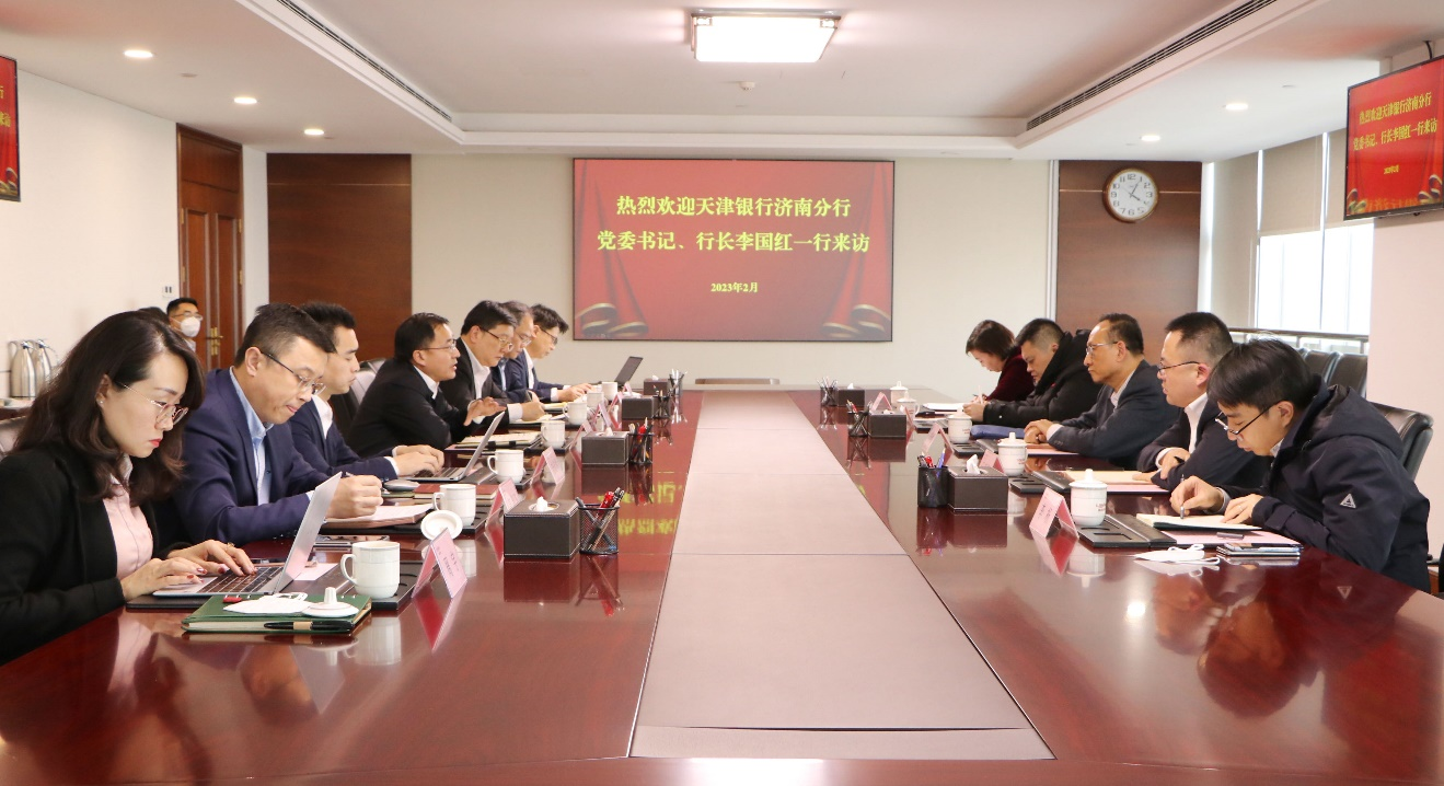 2月8日,天津銀行濟南分行黨委書記、行長李國紅到訪魯商集團,集團黨委副書記、董事、副總經理朱華建熱情接待。