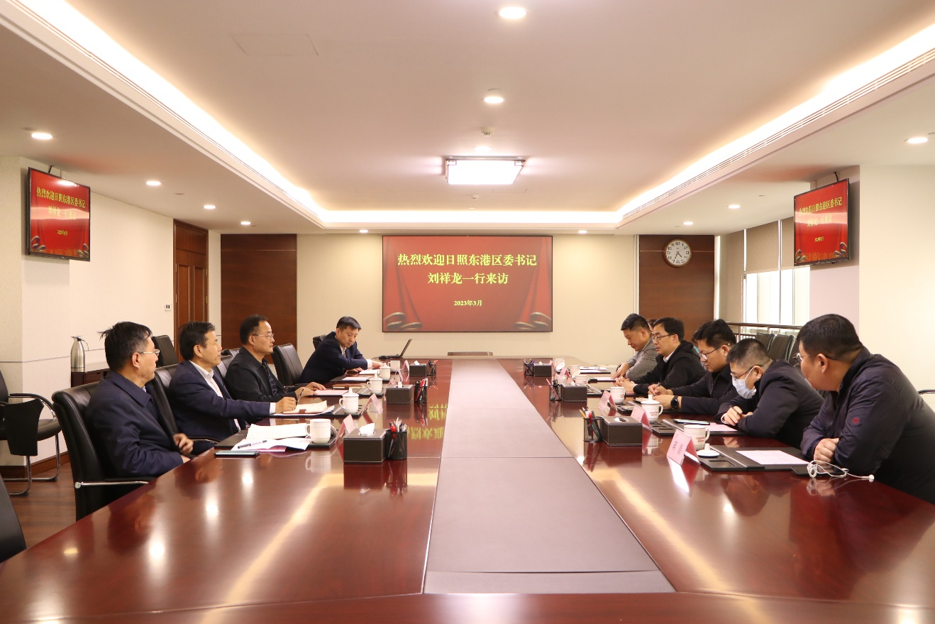 3月22日,日照市東港區委書記劉祥龍到訪魯商集團,集團黨委書記、董事長王緒超熱情接待并舉行座談。
