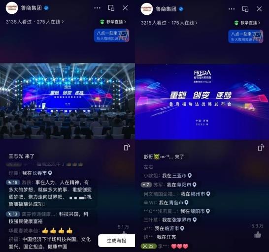本次發布活動通過“魯商集團”微信視頻號、抖音號、“福瑞達醫藥集團”微信視頻號同步直播,全國各地網友、粉絲共同線上見證魯商福瑞達的這一重要時刻,并寄語公司展現國企擔當、勇挑科技興國重任。
