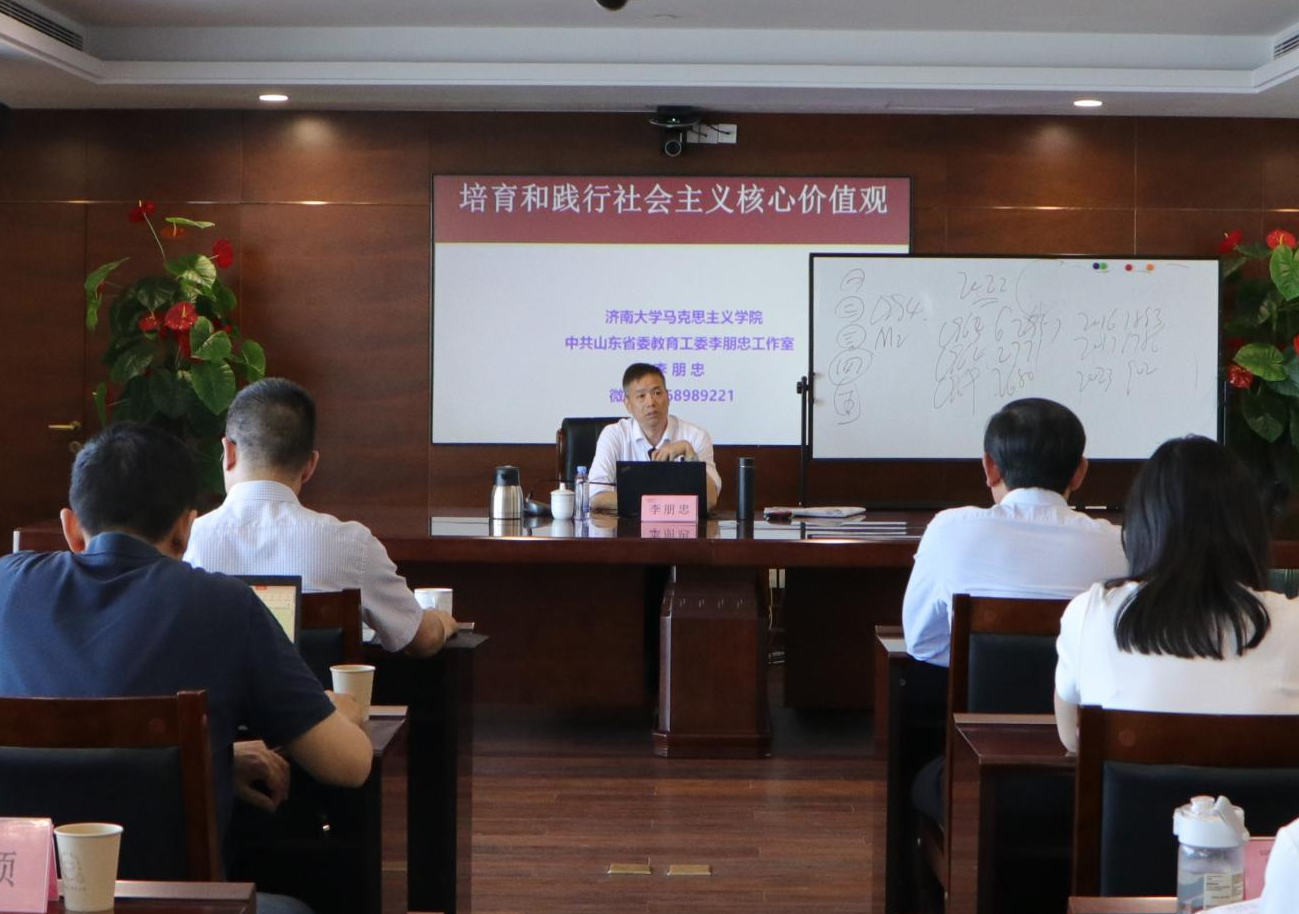 4月25日,由省委宣傳部會同有關(guān)省委省直部門組織開展的山東省培育和踐行社會主義核心價值觀宣講走進(jìn)魯商集團(tuán),宣講團(tuán)成員、濟(jì)南大學(xué)李朋忠教授進(jìn)行專題宣講。集團(tuán)黨委副書記、董事張洪東出席。