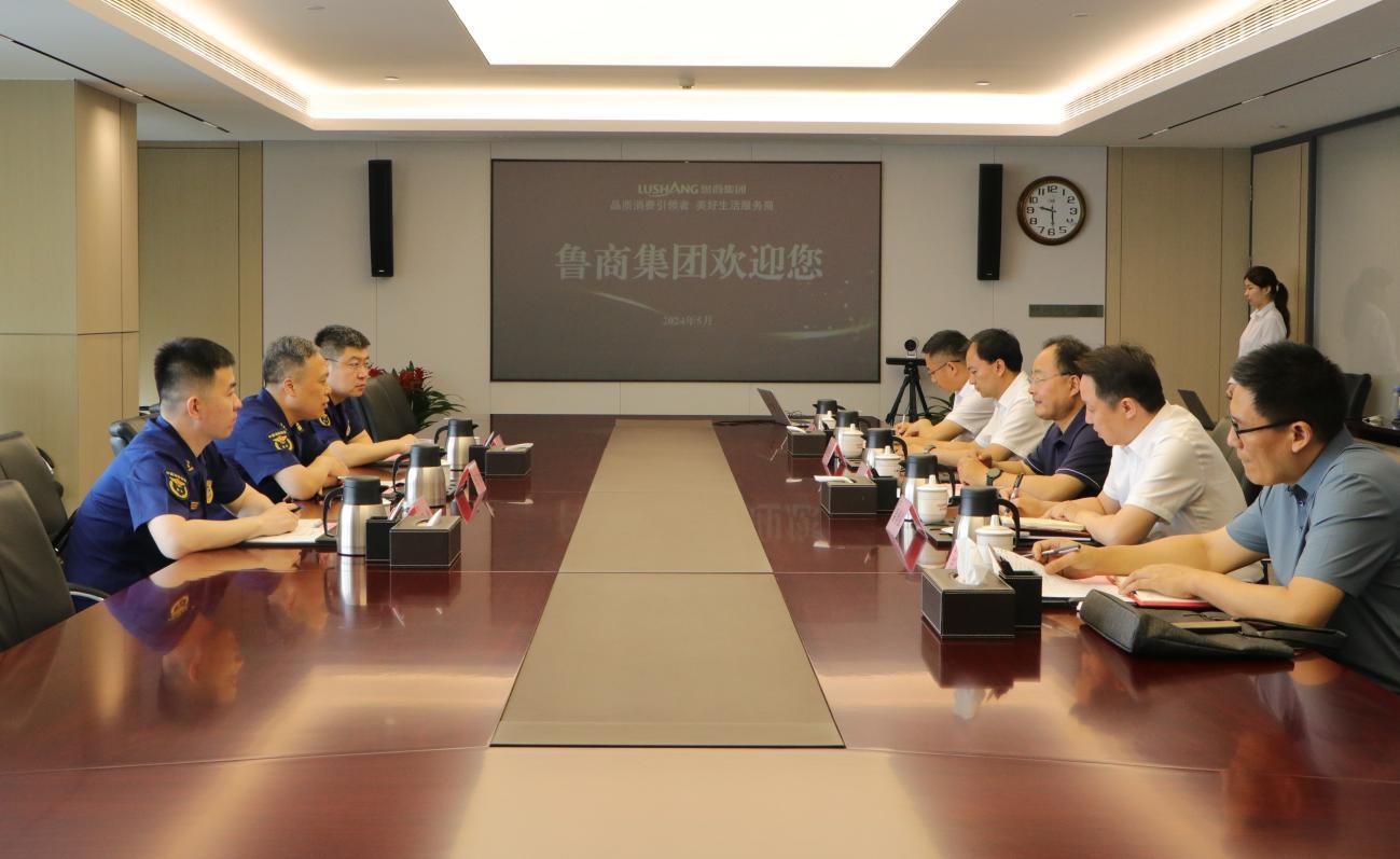 524日,魯商集團黨委書記、董事長王緒超會見到訪的濟南市消防救援支隊黨委書記、政治委員任廣治,雙方就強化合作、提升企業消防安全管理水平進行深入交流。