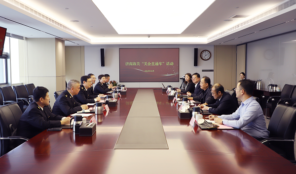 10月16日,濟南海關(guān)到魯商集團(tuán)開展“關(guān)企直通車”活動,宣講跨境電商海關(guān)監(jiān)管政策措施等內(nèi)容,并圍繞支持頭部企業(yè)拓展國際貿(mào)易,促進(jìn)全省外貿(mào)高質(zhì)量發(fā)展進(jìn)行座談交流。濟南海關(guān)關(guān)長、黨委書記劉衛(wèi),集團(tuán)黨委書記、董事長王緒超,黨委常委、副總經(jīng)理、總法律顧問賀敬參加活動。