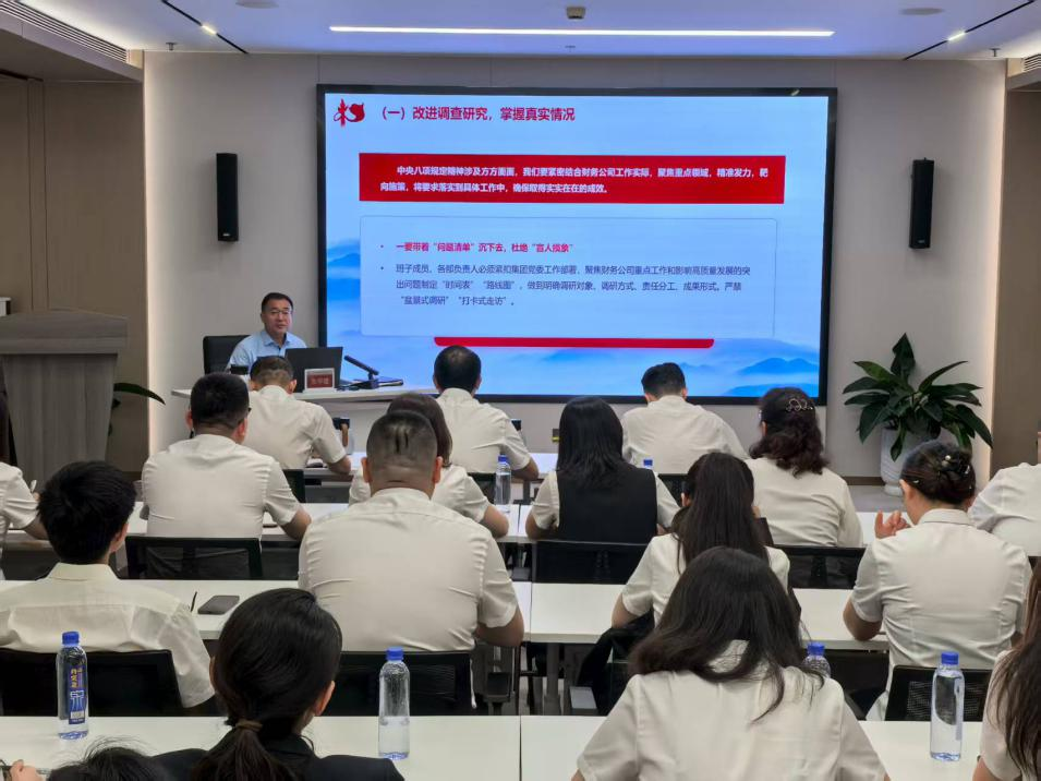 他強調,要提高政治站位,筑牢貫徹中央八項規定精神的思想根基,進一步認識開展深入貫徹中央八項規定精神學習教育的重要意義,豐富學習形式,堅持知行合一,形成“學、思、用”的閉環,把學習成果轉化為解難紓困、推動發展、造福群眾的生動實踐。要鍥而不舍貫徹落實中央八項規定精神,以“作風建設提升年”活動為抓手,緊密結合工作實際,對照問題清單、聚焦重點領域,查擺糾錯,精準發力,靶向施策,改進調查研究、精簡會議文件、規范公務接待、嚴守廉潔紀律,推動中央八項規定精神落地見效,把作風建設成果轉化為推動財務公司發展的實效。要鞏固作風建設成果,扎實做好后半篇文章,既要立足當前,解決突出問題,又要著眼長遠,建立健全長效機制,不斷提高政治能力、業務能力和服務能力,推動作風建設常態化、長效化,為財務公司發展提供堅強作風保障,助力集團高質量發展邁上新臺階。