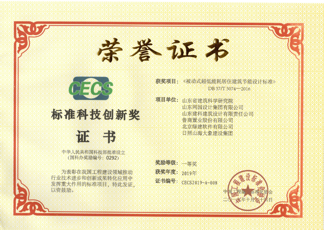 10月24日,中國工程建設標準化協會在杭州舉行2019學術年會暨協會成立40 周年紀念活動。會議對第二屆標準科技創新獎進行表彰,魯商健康產業發展股份有限公司(以下簡稱魯商發展)參編的《被動式超低能耗居住建筑節能設計標準》項目榮獲“標準科技創新獎”一等獎。