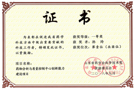 近日,山東省藥學會公布了2018年度山東省藥學會科學技術獎獲獎名單,山東省藥學科學院有5個項目獲獎,其中一等獎2項,二等獎1項,三等獎2項。