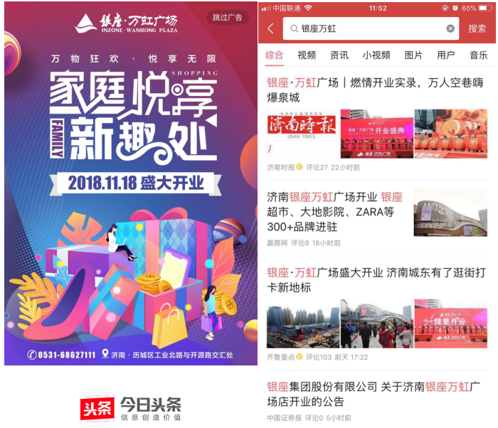 三是加大營銷推廣。為確保開業一炮打響,萬虹廣場店將細分營銷推廣設計為預熱期、爆發期、保溫期,分階段、有節奏地進行開業營銷活動宣傳推廣。借助線上流量媒體,在今日頭條、抖音、騰訊、鳳凰網、齊魯壹點、速豹等融媒體及公眾號等進行精準投放,并嫁接網紅進行活動直播、拍攝傳播。同時,圍繞門店周邊社區及主要商圈進行紙媒、廣播、樓宇框架、樓宇電視、公交車載電視、出租車LED屏、戶外大屏等線下媒體進行宣傳全覆蓋,取得了較大的轟動效應。