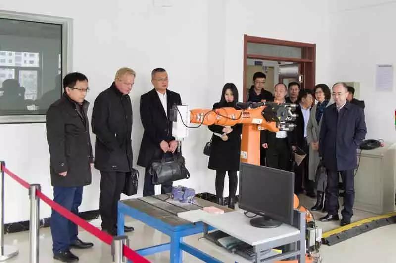 考察團一行參觀了機電工程學院汽車一體化教學工作站和工業機器人一體化教學工作站,并在中德萊茵科斯特卓越技師班項目管理中心察看了雙元培養方案和課程標準。考察團對城市學院的高端定位和取得的成果給予肯定。