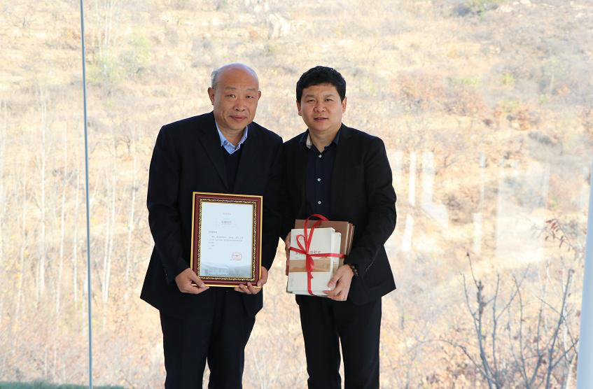 魯商樸宿(泰安)文化旅游發(fā)展有限公司總經(jīng)理馬春濤代表活動(dòng)主辦方接受作家贈(zèng)書,并為作家頒發(fā)了泰山九女峰收藏證書。