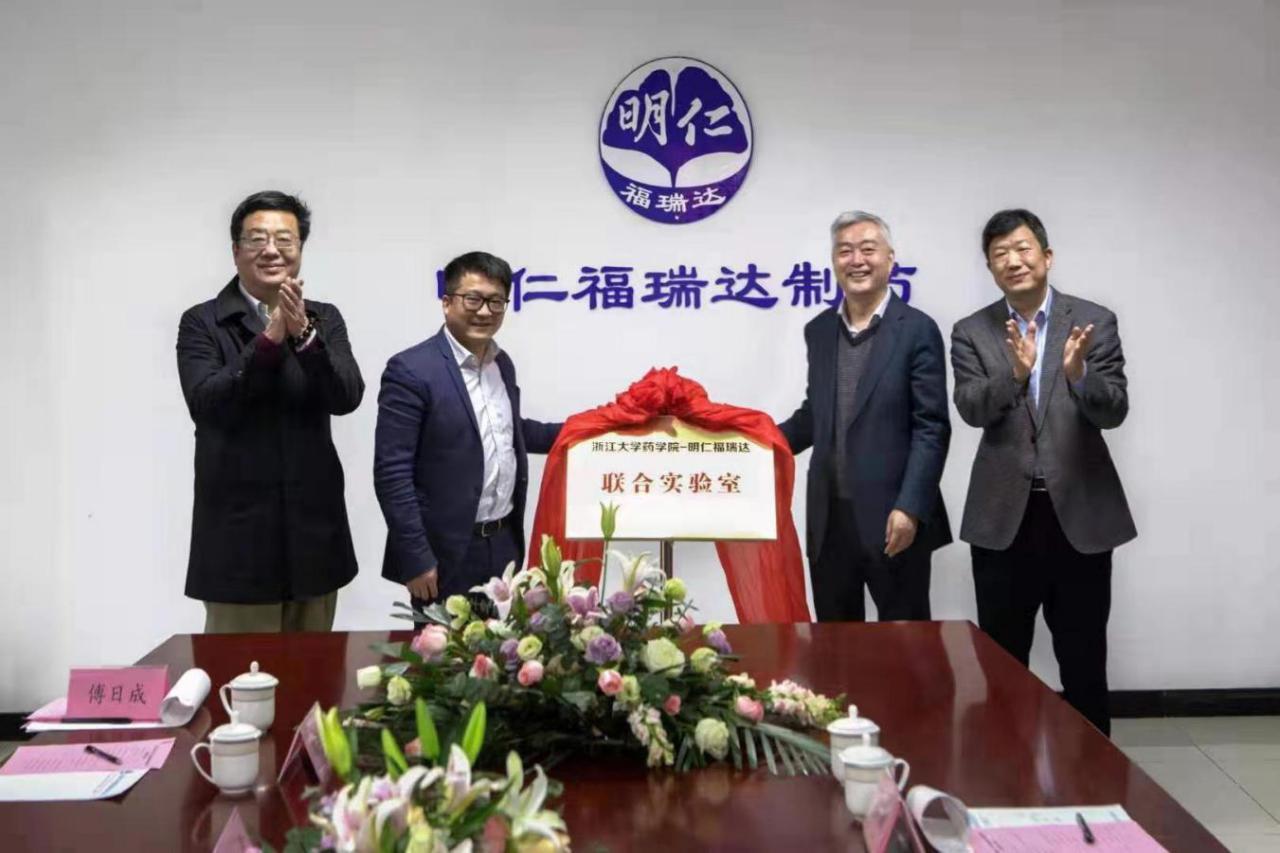 12月13日,浙江大學(xué)藥學(xué)院——明仁福瑞達(dá)聯(lián)合實驗室揭牌儀式在濟(jì)南舉行。省商業(yè)集團(tuán)有限公司(簡稱魯商集團(tuán))教育科技管理部部長梁乃計、福瑞達(dá)醫(yī)藥集團(tuán)總經(jīng)理賈慶文、浙江大學(xué)藥學(xué)院院長助理劉雪松、浙江大學(xué)現(xiàn)代中藥研究所黨支部書記欒連軍共同為聯(lián)合實驗室揭牌。