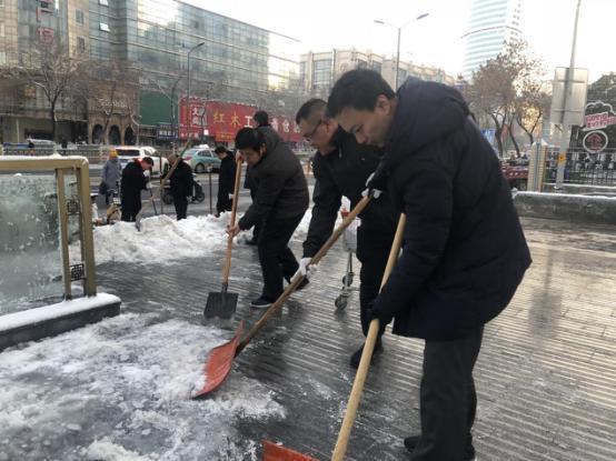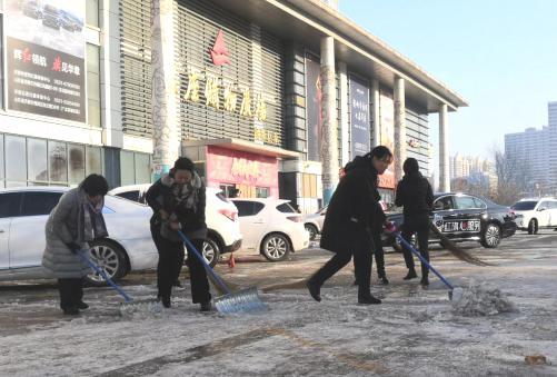 總部安全管理部、銀座購物廣場(chǎng)、北園店、七里山店、高新店、馬鞍山店、東環(huán)店等單位黨員齊上陣掃雪除冰。大家配合默契,鏟的鏟、推的推、掃的掃,忙碌的身影構(gòu)成了一道亮麗的風(fēng)景線,及時(shí)確保了雪天道路的暢通。