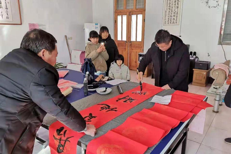 在座談、走訪的同時,學校還組織了書法愛好者,為村民義務書寫100余幅春聯和“福”字,受到村民的好評。