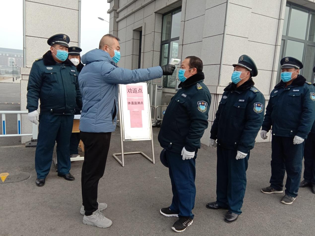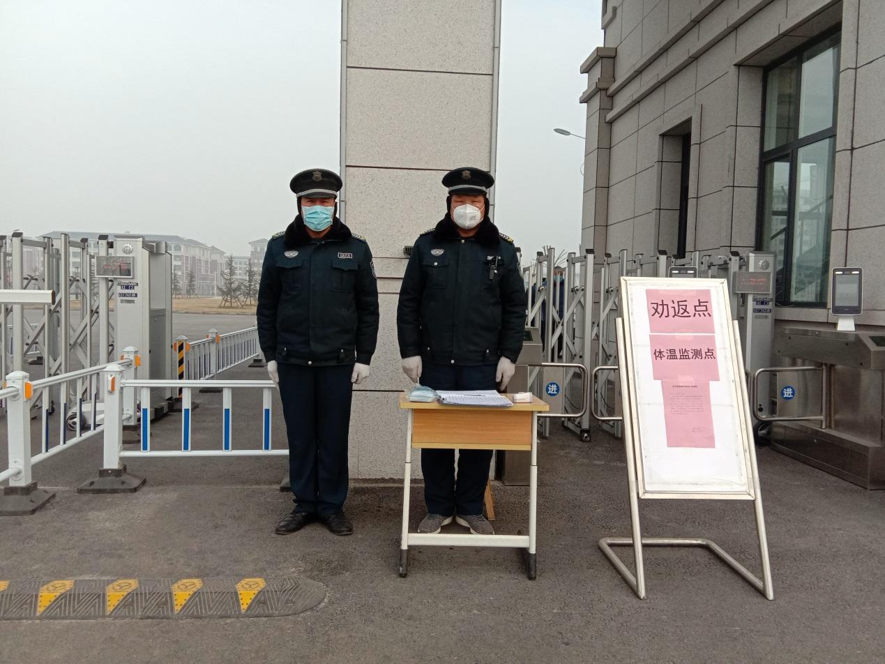 嚴(yán)守校園,確保校園安全。安全保衛(wèi)處全體人員堅(jiān)持在班在崗,全力做好校園疫情防控。對(duì)全體在校留守人員進(jìn)行全面排查;及時(shí)封閉校門,加強(qiáng)門衛(wèi)管理,勸阻外來人員、車輛;設(shè)置勸返點(diǎn)、體溫檢測點(diǎn),每天對(duì)來校安保人員和值班人員進(jìn)行體溫檢測,并詳細(xì)登記;利用校園監(jiān)控系統(tǒng)對(duì)校園重點(diǎn)區(qū)域進(jìn)行全方位監(jiān)控;每天不定期對(duì)各樓宇和校園進(jìn)行巡查,加大夜間巡查,確保校園安全。