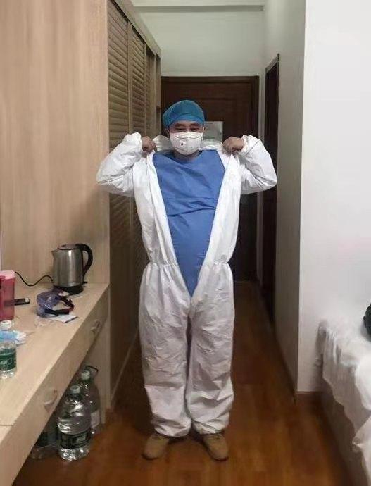 于波是齊魯醫(yī)藥學(xué)院1999級醫(yī)學(xué)影像專業(yè)學(xué)生,目前就職于滕州市人民醫(yī)院。大年初一,剛下夜班的于波來不及休息就動身前往湖北,當(dāng)天晚上抵達(dá)武漢天河機(jī)場,初二凌晨3點入住黃岡酒店。從到湖北的第一天起,于波就沒有好好休息過。各種防護(hù)培訓(xùn)、安全考核接踵而來,各種物資的搬運整理、各類機(jī)器的調(diào)試都需要人手。時間不等人,患者病情更不容許有一刻的耽誤。于波咬緊牙關(guān),抓緊一切時間沖鋒在前。