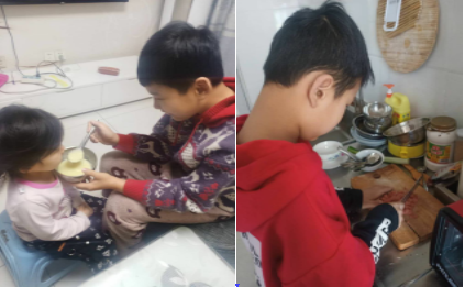這個(gè)11歲的“男子漢”主動(dòng)承擔(dān)起了做飯、照顧妹妹的重?fù)?dān)。菜刀對(duì)他來說還有些重,一不小心會(huì)切到手;炒菜掌握不好,熱油濺到臉上;煎雞蛋沒控好火侯,把蛋煎生了;妹妹會(huì)哭,還不易哄……但是,這個(gè)勇敢的男孩一點(diǎn)點(diǎn)承擔(dān)起來。