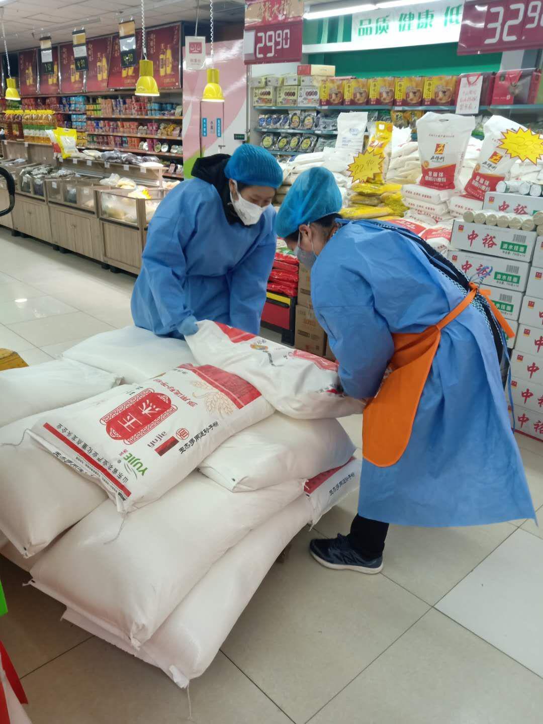 趙叢叢提前穿戴好防護(hù)服、手套等,武裝好自己。一天的工作就緊張而有序地開始了:開場(chǎng)前,她要帶領(lǐng)團(tuán)隊(duì)的同事,一起做好貨區(qū)消毒,蔬菜區(qū)50多個(gè)單品、堆架頭20多個(gè)單品的上架,線上平臺(tái)預(yù)訂單接收和備貨、集中配貨,處理線上顧客反映的問題等各項(xiàng)工作。