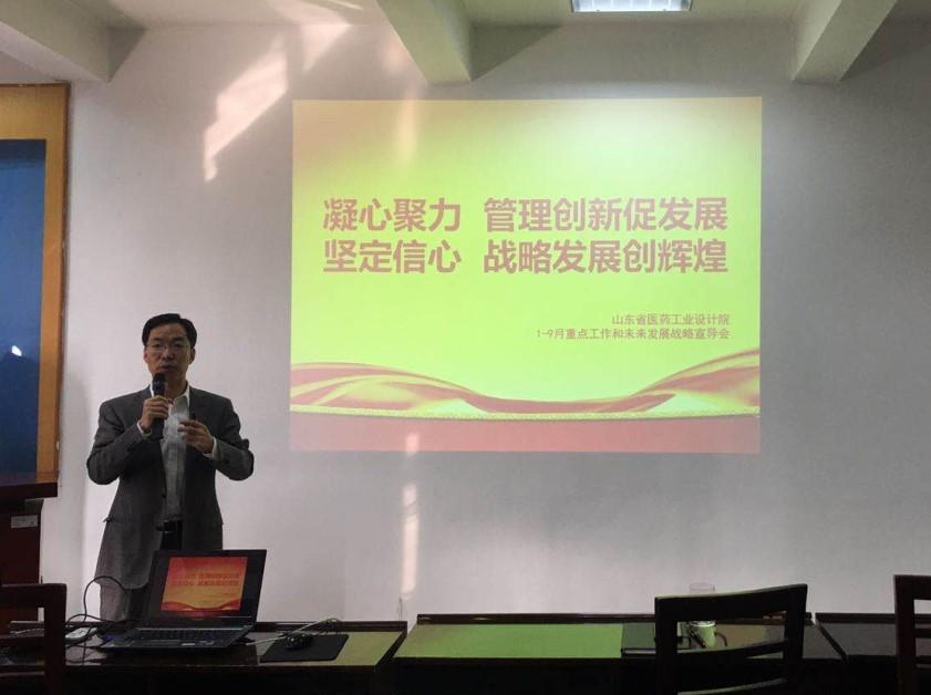 隨后,黃曉東從1-9月工作完成情況、存在的主要問(wèn)題、重點(diǎn)工作及戰(zhàn)略發(fā)展等方面進(jìn)行總結(jié)和部署。他指出,前三個(gè)季度,省醫(yī)工設(shè)計(jì)院在事改企、新舊動(dòng)能轉(zhuǎn)換、保障抗疫防疫物資、服務(wù)山東大局等方面都取得了顯著的成績(jī),尤其是被列為山東省新舊動(dòng)能轉(zhuǎn)換重大項(xiàng)目的甘李藥業(yè)山東有限公司臨沂生產(chǎn)基地項(xiàng)目、河北國(guó)龍制藥有限公司新型制劑及生物醫(yī)藥產(chǎn)業(yè)園項(xiàng)目?jī)蓚€(gè)大型項(xiàng)目的簽約,有力提高了設(shè)計(jì)院的品牌和知名度。他強(qiáng)調(diào),要以“十四五”戰(zhàn)略發(fā)展規(guī)劃為指引,強(qiáng)化雙招雙引、人才培養(yǎng)、改革創(chuàng)新等工作;要奮力推進(jìn)事改企的后續(xù)工作,提升設(shè)計(jì)院治理水平,完善內(nèi)部管理體系,調(diào)整機(jī)構(gòu)設(shè)置,開(kāi)展全員競(jìng)崗;要大力開(kāi)展解放思想大討論第二階段工作;要加大商務(wù)和項(xiàng)目運(yùn)行力度,堅(jiān)決完成全年經(jīng)營(yíng)指標(biāo);要堅(jiān)持疫情防控措施不放松,全力以赴保安全。