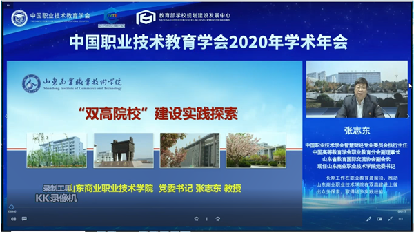 1月31日,中國職業技術教育學會(以下簡稱中國職教學會)2020年學術年會以線上線下相結合的方式召開,山東商院黨委書記張志東參會并作《“雙高院?!苯ㄔO實踐探索》專題報告。