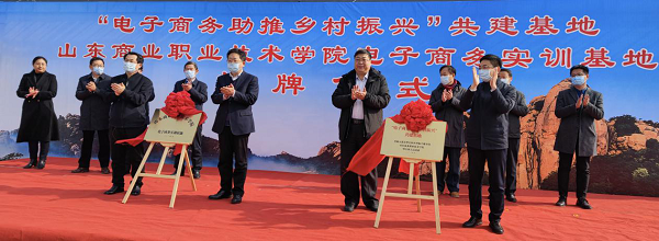 揭牌儀式上,張志東、李學春為“電子商務助推鄉村振興”共建基地揭牌,馬維強、林杰為“山東商院電子商務實訓基地”揭牌。