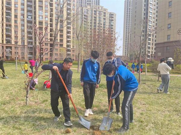 作為著名的觀賞開花喬木,櫻花樹是煙臺春天主要的觀花樹種。植樹隊伍當天在小區種下了100余株櫻花樹,在櫻花競相開放的三月天里,“社區黨建共建和諧林”將為煙臺春季的花景再添一抹亮色。