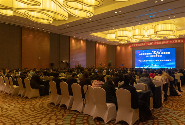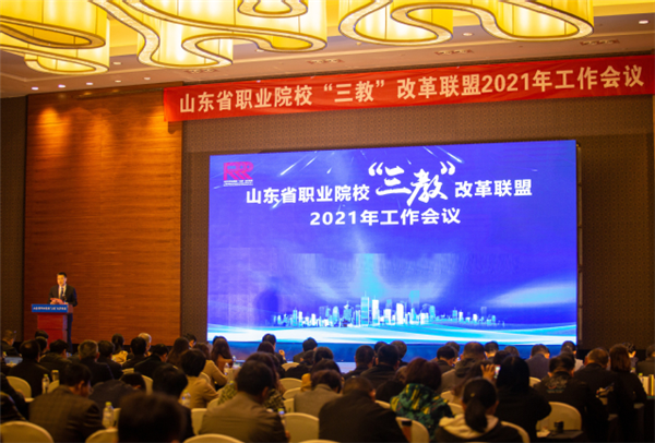 學院院長姜玉鵬主持會議開幕式。山東省教育廳職教處副處長趙朝暉在講話中對山東省職業(yè)院校“三教”改革聯(lián)盟2021年工作會議的召開表示祝賀,分析了職業(yè)教育發(fā)展形勢,闡釋了2021年山東省職業(yè)教育工作重點。他要求,各聯(lián)盟單位要深入學習貫徹習近平總書記對職業(yè)教育工作作出的重要指示,落實李克強總理批示要求,創(chuàng)造新實踐、探索新經驗、蹚出新路子,切實做好“三教”改革各項工作,為部省共建職教高地貢獻智慧和力量。