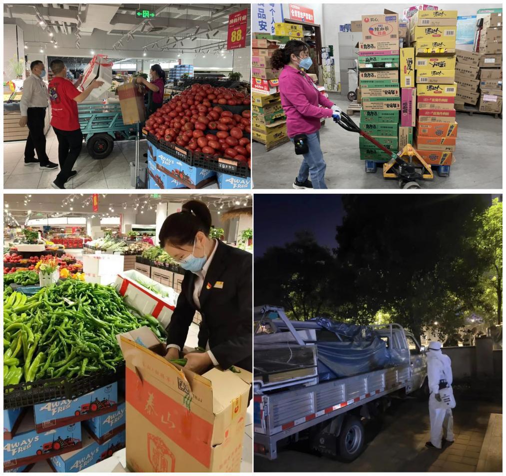 濟南銀座高新店黨支部廣大黨員身體力行為人民群眾筑起隔絕病毒的堅固屏障,以實際行動踐行著共產黨員的初心使命。支部書記王孜晨同志帶頭作表率,全體員工上下一心、眾志成城,做好各項保供工作,確保民生物資保供鏈不斷檔。白天,門店在出入口設立黨員先鋒崗,測溫、驗碼,確保不漏一人,嚴守安全門。同時根據所處地理位置和實際情況,積極主動聯系周邊封控、管控社區,共建保供點,確保居民米面糧油、肉蛋奶等生活必需品供應充足及時。傍晚,門店為駐店員工送上愛心晚餐,準備好被褥等生活用品。夜半時分,當整座城市悄然進入夢鄉,門店員工依然奮斗在一線。在自營蔬菜區、糧油米面區、卸貨區等,都能看到黨員突擊隊、青年突擊隊紅色馬甲的背影,捆扎蔬菜、打包、配送、消殺......所有工作井然有序、快速高效,大家懷揣著對黨的忠誠、對生活的熱愛,從黎明破曉到滿天星斗,完成日常經營與定向保供工作,切實凝聚起不舍晝夜、同舟“供濟”的強大合力。