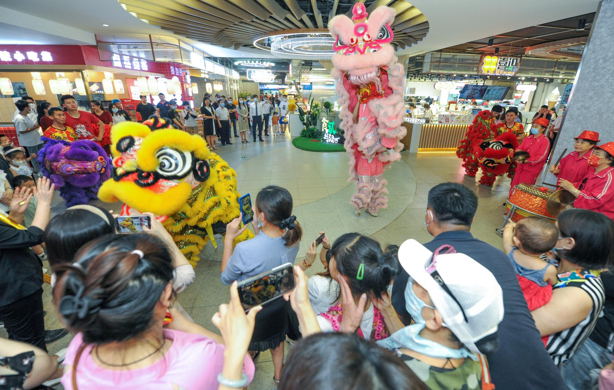 活動現場,伴著鏗鏘鼓樂,精彩的醒獅表演在騰挪漫步、跳躍嬉戲中,將生龍活虎、蒸蒸日上的精氣神表現的淋漓盡致,引來眾多顧客的駐足和喝彩。