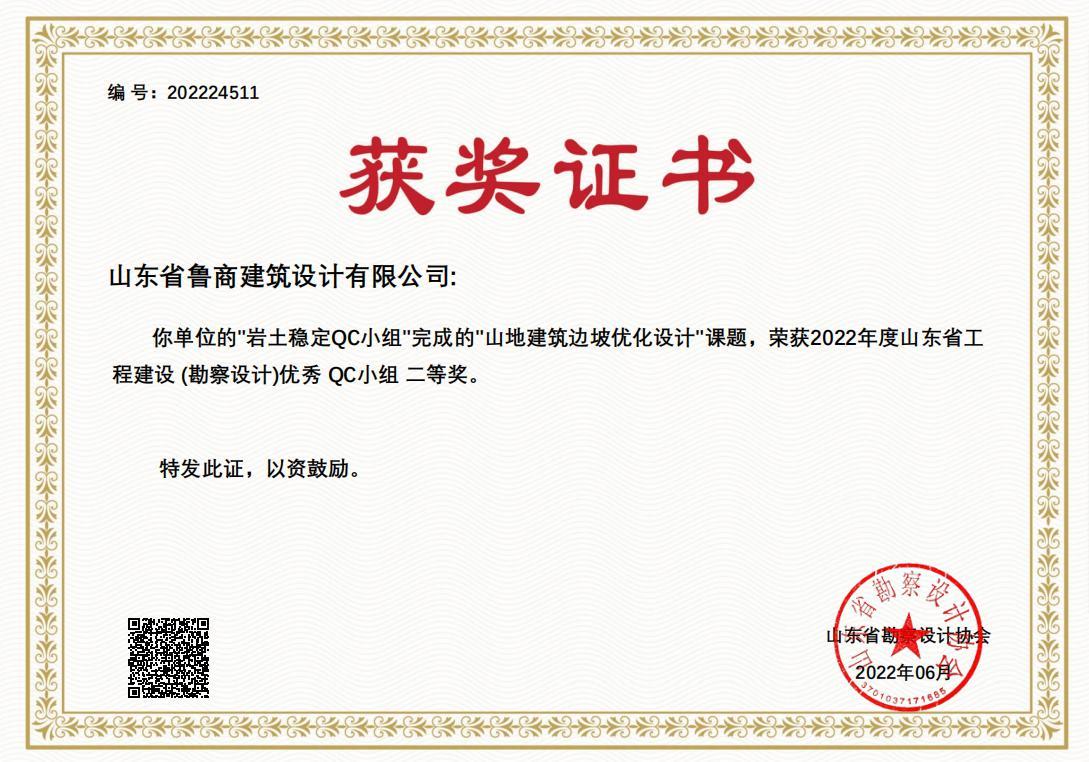近日,由省勘察設(shè)計(jì)協(xié)會(huì)組織評(píng)選的2022年度山東省工程建設(shè)(勘察設(shè)計(jì))優(yōu)秀QC小組獲獎(jiǎng)名單揭曉。魯商服務(wù)設(shè)計(jì)院申報(bào)的“山地建筑邊坡優(yōu)化設(shè)計(jì)”“降低空調(diào)室外機(jī)噪聲對(duì)居民生活的影響”兩課題分別獲得二、三等獎(jiǎng)。