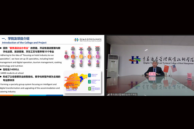 12月21日,由中國教育國際交流協(xié)會舉辦的中美職教院校長對話暨中美百千萬院校云攜手會議在線上舉行。中國教育國際交流協(xié)會副秘書長余有根、美國加州圣巴那迪諾郡長海德曼、青島酒店學(xué)院黨委書記李達出席會議。