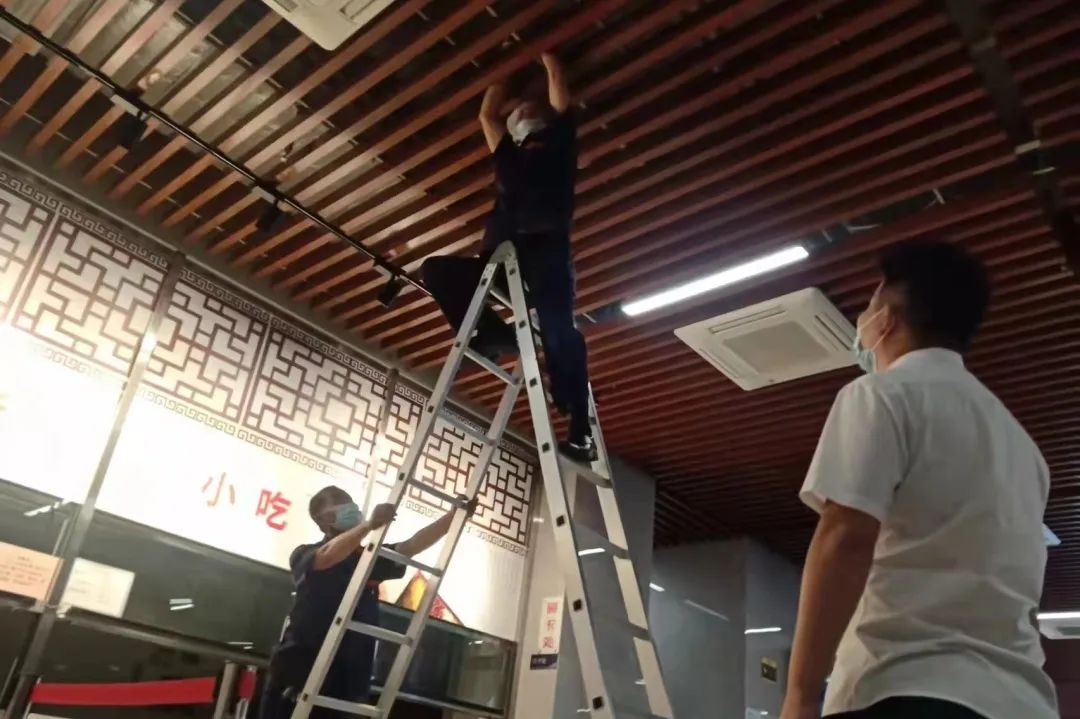 針對客戶反應的餐廳光線問題,項目迅速對餐廳進行深入調研,增加36組照明燈。并對南航公寓餐廳下沉廣場、園區涼亭及附近地板進行翻修養護,為公寓入住人員創造整潔、舒適的生活環境。