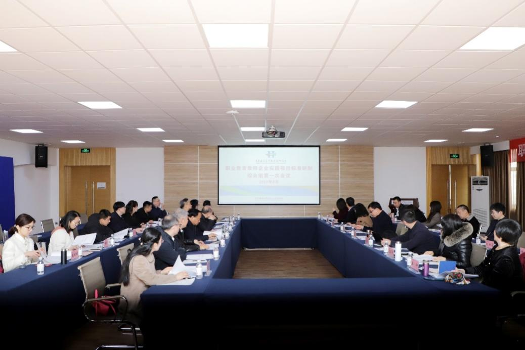職業(yè)教育教師企業(yè)實(shí)踐項(xiàng)目標(biāo)準(zhǔn)研制綜合組全體專家、秘書處成員,研制組專家代表參加會(huì)議。