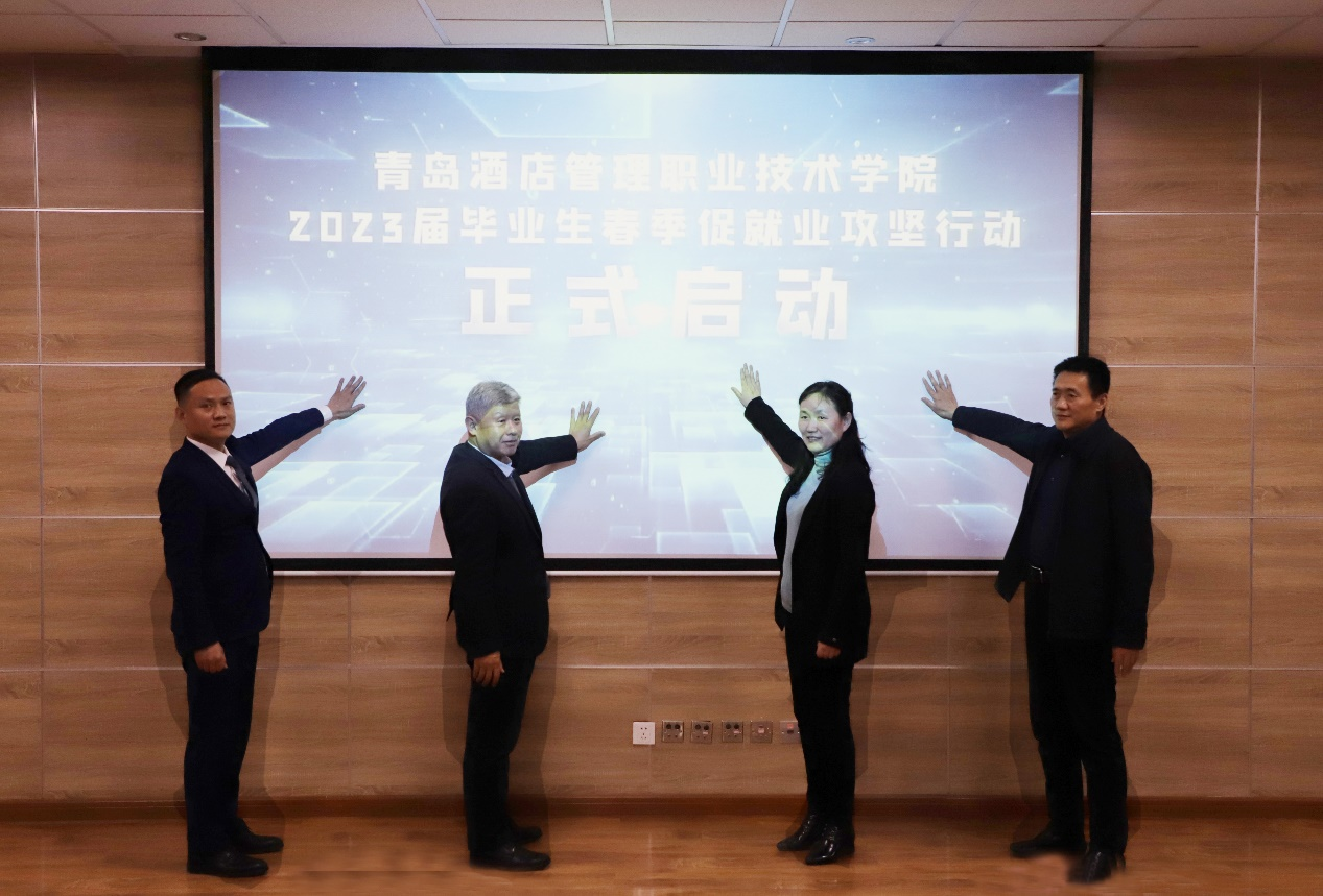 4月4日,青島酒店學(xué)院?jiǎn)?dòng)2023屆畢業(yè)生春季促就業(yè)攻堅(jiān)行動(dòng),全面部署2023屆畢業(yè)生就業(yè)工作。青島市公共服務(wù)與就業(yè)中心副主任秦冬梅,青島萬(wàn)科物業(yè)服務(wù)有限公司總經(jīng)理李凱偉,青島酒店學(xué)院黨委書記李達(dá)、院長(zhǎng)姜玉鵬出席活動(dòng)。