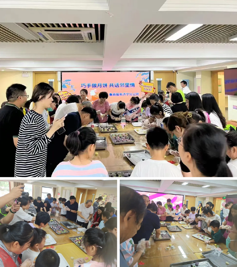 濟寧地區公司、南池公館服務中心攜手南池社區開展“中秋國慶雙節至 共愿家國兩團圓”主題活動。邀請業主共同制作月餅,加強鄰里之間、物業與業主之間的交流互動。